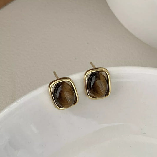 Tightsandtights Square Tiger Eye Stud Earrings for Women – 925 Sterling Silver Minimalist Design