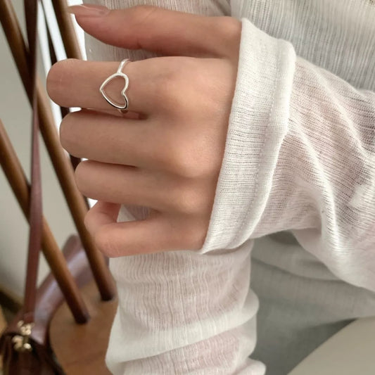 Tightsandtights 925 Sterling Silver Heart Open Ring for Women – Adjustable Band